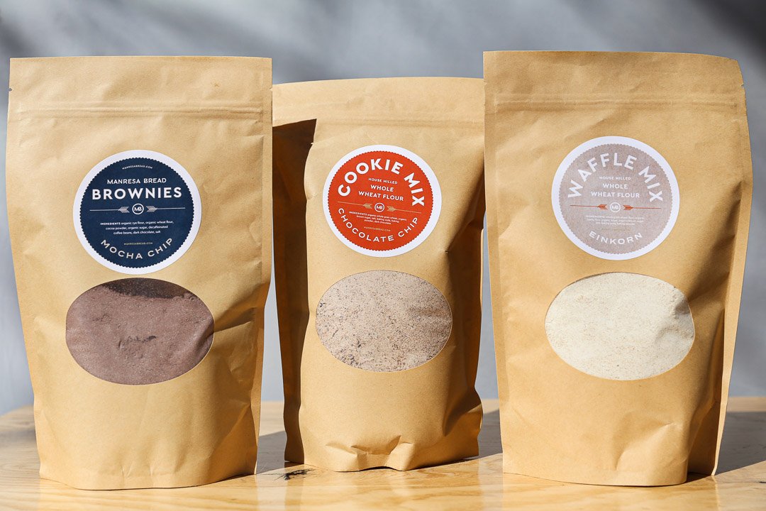Brownie mix ingredients: Organic rye flour, organic wheat flour, cocoa powder, organic sugar, decaffeinated coffee beans, dark chocolate, salt